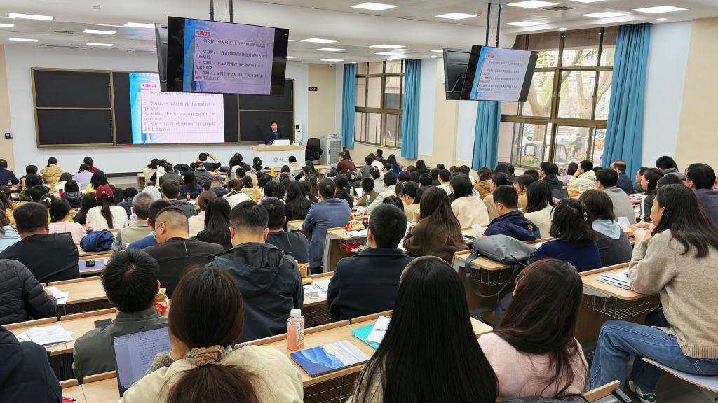 11月26日,由社会科学处主办的第107期青年教师跨学科论坛举办。论坛邀请马克思主义学院院长燕连福教授作题为“党的二十届四中全会公报解读与选题启示”的专题报告,吸引了160余位师生积极参与。